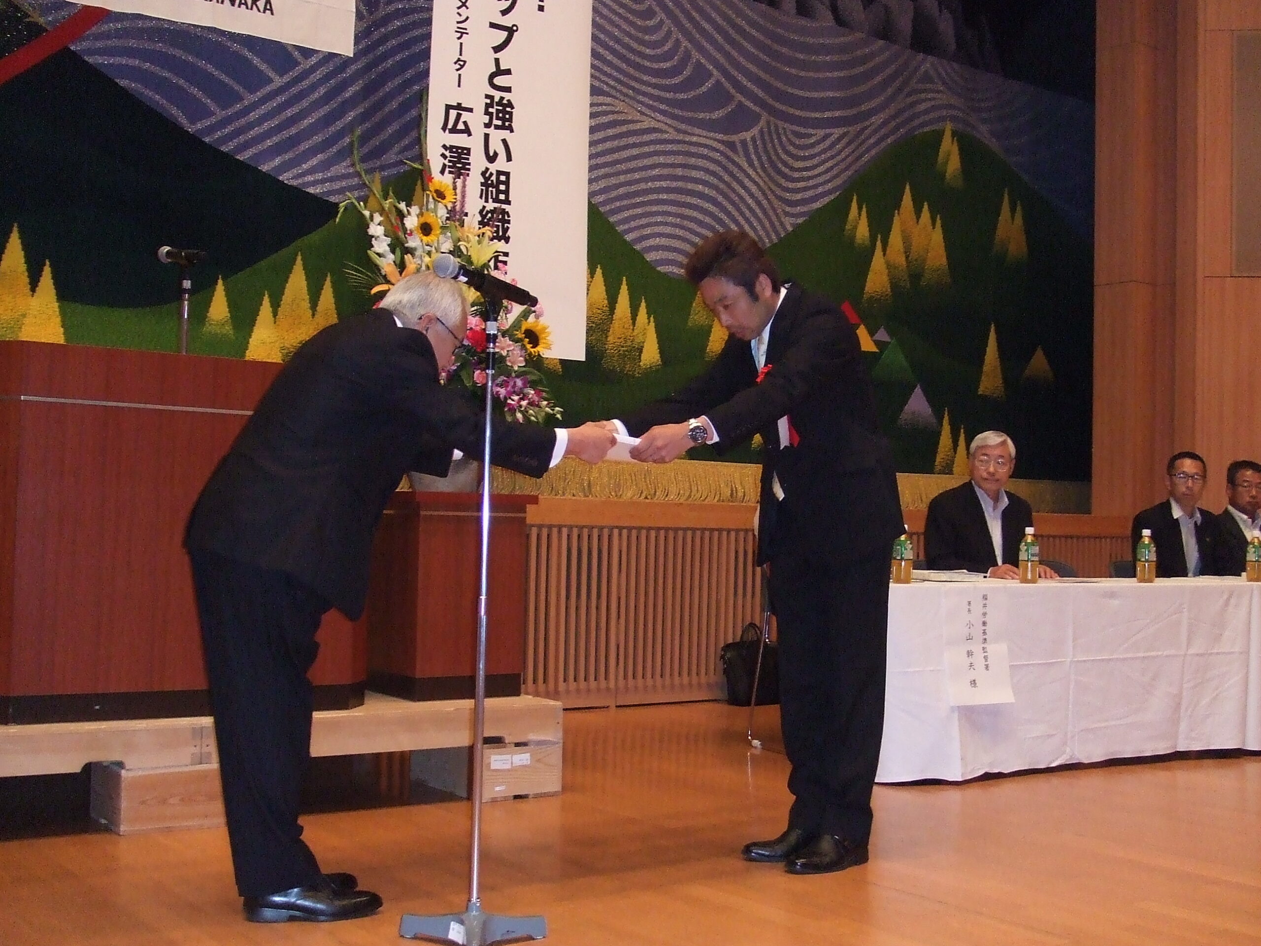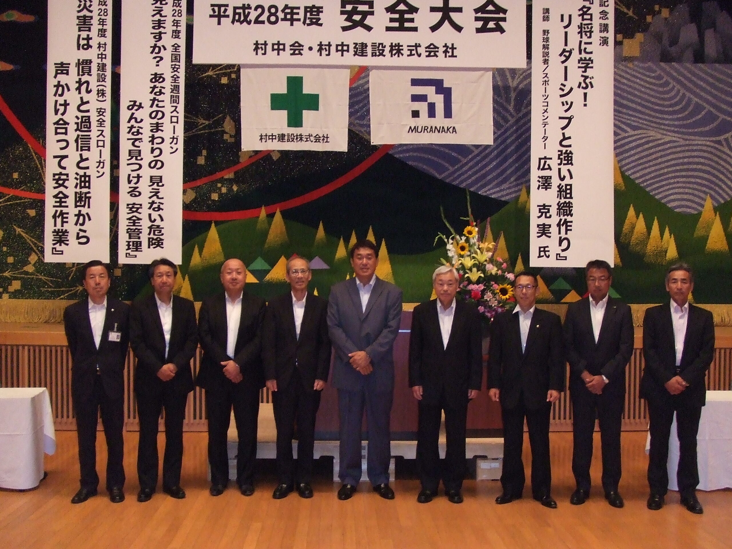 平成28年度福井地区安全大会が開催されました。 お知らせ|2016.6.22 平成28年6月21日、アオッサ県民ホールにて福井地区村中会会員をはじめ協力会社の皆様118名と社員31名の総勢149名が参加し安全大会が開催されました。 安全大会では、日頃より災害防止活動に積極的に協力いただいた企業・個人への安全表彰につづき、来賓に福井労働局 福井労働基準監督署 小山署長を迎え安全に関する講話をお聞きしました。 その後、野球評論家の広澤克実氏による「名将に学ぶ!リーダーシップと強い組織作り」と題した記念講演があり、広澤氏が現役時代に仕えた3監督(野村・星野・長嶋)の下での苦労話などを紹介されました。 今年度のスローガン「見えますか?あなたのまわりの 見えない危険 みんなで見つける 安全管理」のもと、無事故無災害の徹底を誓い大盛況のうちに終了しました。